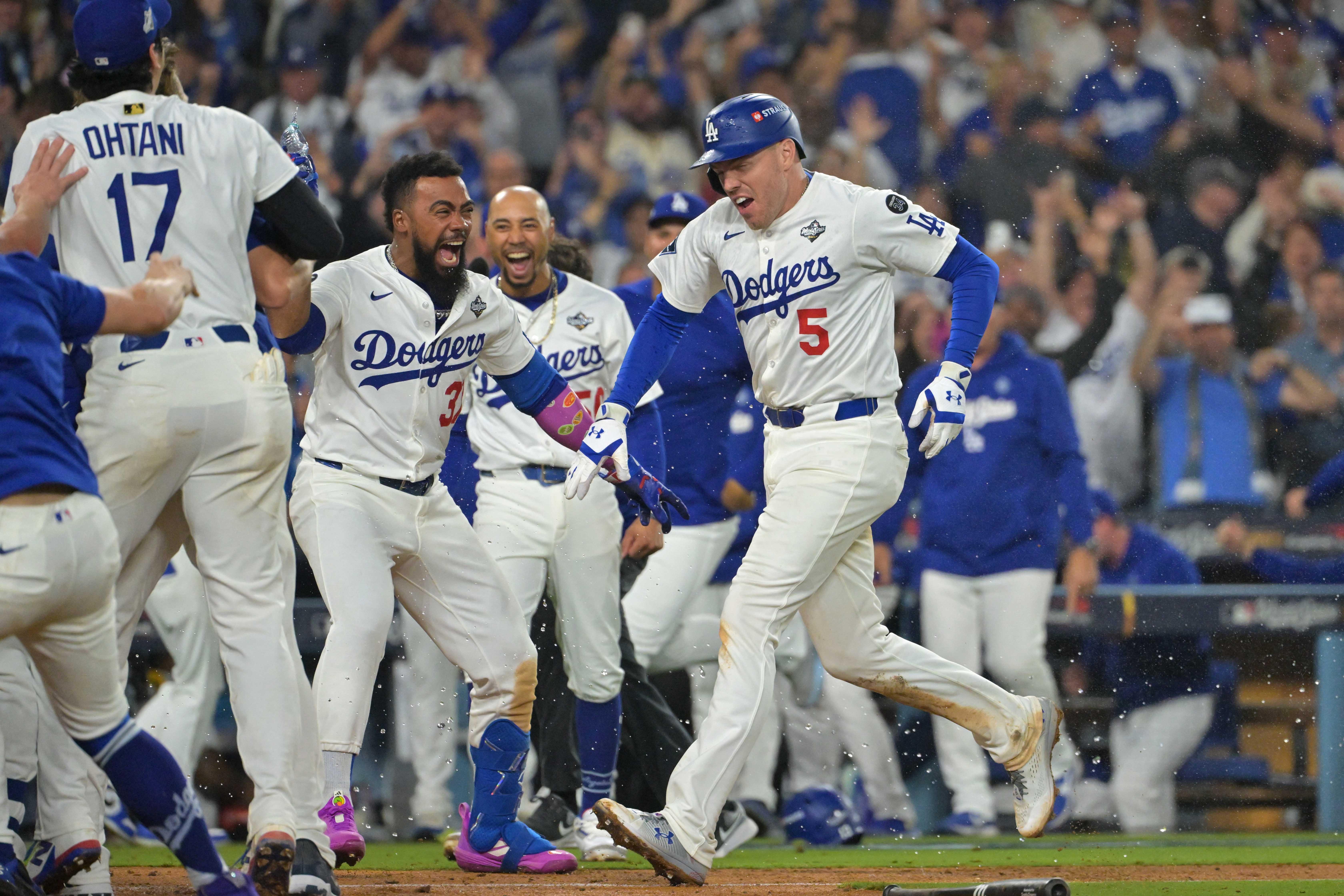 Freddie Freeman delivered a walk-off home run in the 18th inning to give the Los Angeles Dodgers a 6-5 victory over the Toronto Blue Jays late on Monday in a game that tied for the longest in World Series history.