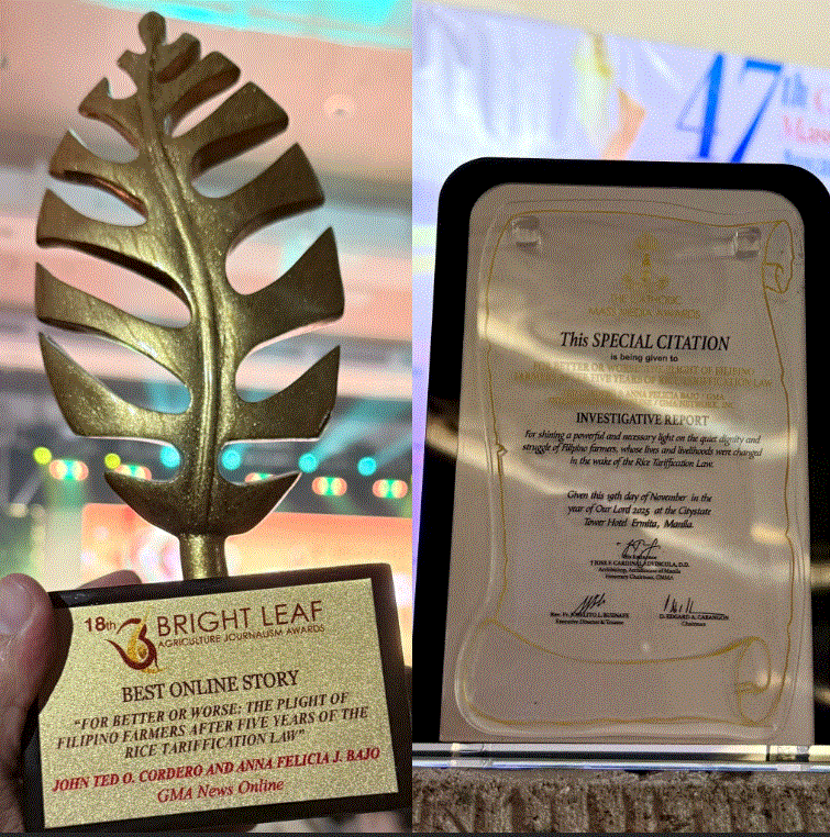 GMA News Online”s special report, which re-examined the impact of the Rice Tariffication Law (RTL) on Filipino farmers and on the landscape of the rice industry five years after it took effect, has received recognition from the 18th Bright Leaf Agriculture Journalism Awards and the 47th Catholic Mass Media Awards (CMMA).