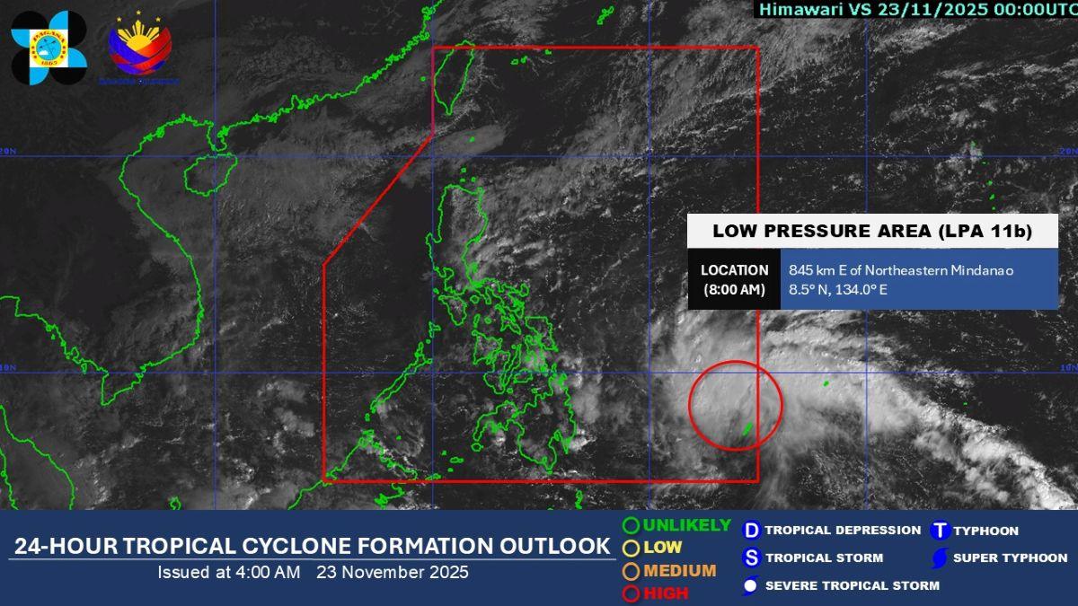 A low pressure area (LPA) located east of Mindanao entered the Philippine Area of Responsibility (PAR) on Sunday morning, PAGASA said.