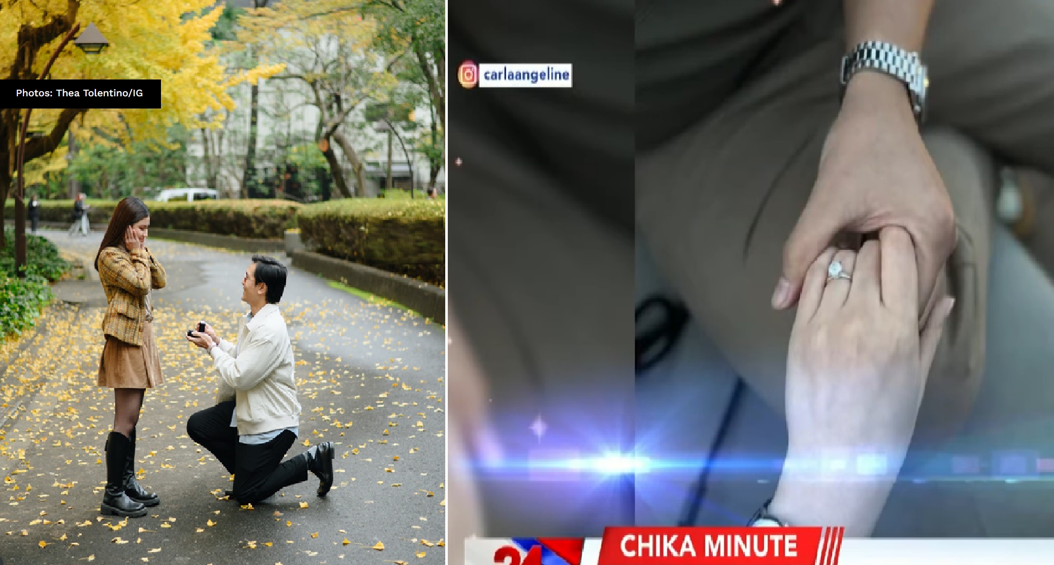 Engaged na ang Kapuso star na si Thea Tolentino sa kaniyag non-showbiz boyfriend Martin San Miguel. Habang si Carla Abella naman, nag-post ng larawan na makikita ang singsing at may kahawak-kamay kaya napatanong ang netizens kung engaged na rin kaya siya?