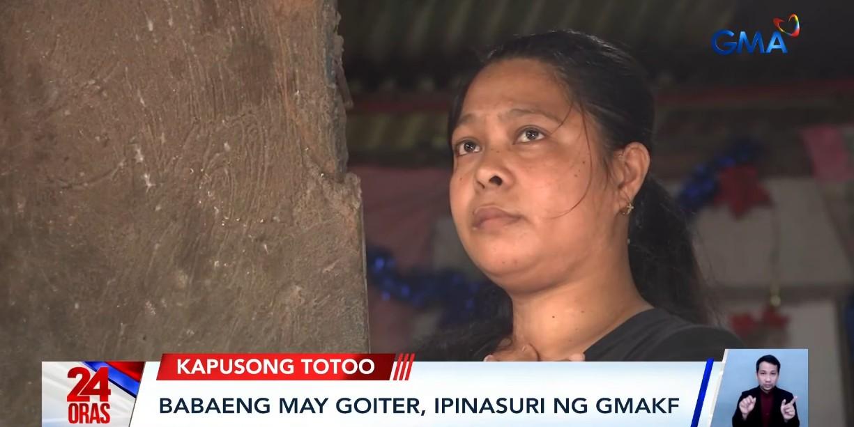 A woman with goiter has undergone a medical examination with the help of GMA Kapuso Foundation.