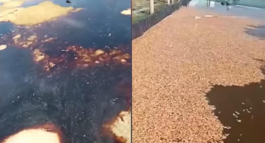 The dike of Lagoon 6 of the URC-owned Bais Distillery collapsed late last month, sending molasses wastewater into Bais Bay, resulting in the discoloration of the water and dead fish.